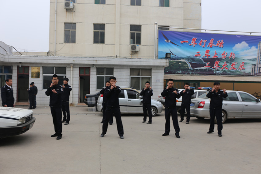 为加强人民法院司法警察队伍的专业化、正规化建设,全面提高队伍整体素质和执法能力,更好地服务于审判、执行和安保工作。从2014年3月12日起,巨野法院法警大队的12名司法警察在队长刁卫华的带领下,自加压力,分别对队列、擒敌拳、应急棍、警棍盾牌操、防暴队形、“四项规则”等科目进行为期30天的强化训练。 刁卫华队长每天早晨六点准时进行训练前动员,强调训练的重要性和必要性,对一天的训练科目进行部署。内容上,以实战的应用训练为重点,在抓好体能、队列等训练的基础上,突出警械器材使用,擒拿格斗以及突发事件能力处理的训练。逐步完善和丰富培训内容,使训练内容进一步向实用化、规范化、长效化、科学化、军事化方向发展。此外,法警们还加强了法警理论学习,内容包括《人民法院司法警察条例》、《人民法院司法警察内务条例》、《人民法院司法警察押解、看管、值庭规则》、《人民法院司法警察执法行为规范》等专业理论知识。 通过此次集训,意在提高我院司法警察大队整体素质,进一步改变法警精神面貌,扎实整顿纪律作风,使司法警察大队成为一支 “业务精通、作风优良、纪律严明、保障有力”的司法警察队伍,为我院审判、执行及机关安全保卫工作提供坚强有力的警务保障。 |