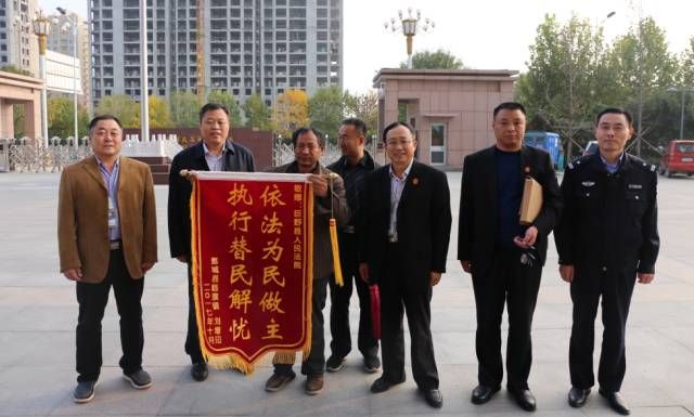、 10月20日,鄄城县临濮镇村民刘某来到我院,送来写有“依法为民做主,执行替民解忧”的锦旗表达感谢。我院党组书记、院长程相锋从当事人手中接过锦旗,并鼓励刘某重拾生活信心,同时希望对法院工作多提宝贵意见。 2013年申请执行人刘某儿子驾驶三轮摩托与两辆停靠大货车发生追尾,并因此失去生命,后经定陶县人民法院判决,由大货车所挂靠的巨野某运输公司承担32万元的连带赔偿责任。判决书生效后,申请执行人向做出判决法院申请强制执行。在执行处理完毕肇事货车拍卖价款5万余元后,该运输公司一直无财产可供执行,导致案件进入僵局。为此,申请执行人长期到当地政府上访。 2017年该案移送至我院执行局,面对难啃的“骨头案”,党组会多次讨论研究,要求拿出钉钉子的精神,穷尽一切执行手段,务必使案件尽快解决。执行人员先后多次到该运输公司调查,该公司均予以积极配合,但公司账户仍没有可供执行资金。面对这种情况,该案承办法官何书星打算另辟溪径,多次赴济宁、聊城等地调查挂靠在该公司明下的车辆,目的就是查实这么多车辆的管理费用为什么公司账户没有显示。经被调查的多名车主反映挂靠的费用都打入了一个韩强(化名)的个人账户。案件至此打开了突破口,经法院多次询问调查,在证据面前,起初态度坚决的韩强终于迫于法律威严,主动主动承认该公司一直利用其个人账户进行资金往来的事实,并愿意一次性付清所有执行款。 面对26万余元现金,申请执行人对对我院执行局何书星法官执行团队不辞辛苦、认真负责的工作作风连连称赞。 今年我院在基本解决执行难的攻坚战中,组建起新团队、运用新技术、规范新流程,旨在充分保障当事人的合法权益,让群众在每一个具体的执行案件中感受到公平正义,从而不断提升的司法公信力。 |